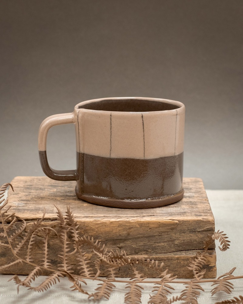 A cup for tea or coffee made from clay slabs. Because of its large size (4 dl) it is suitable for tea, hot chocolate, white coffee and all other drinks.