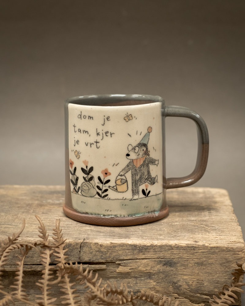 Manjša skodelica za čaj in kavo z ilustracijo. Zaradi svoje velikosti (1,8 dcl) je primerna za čaj, vročo čokolado, belo kavo in vse ostale tekoče dobrote.