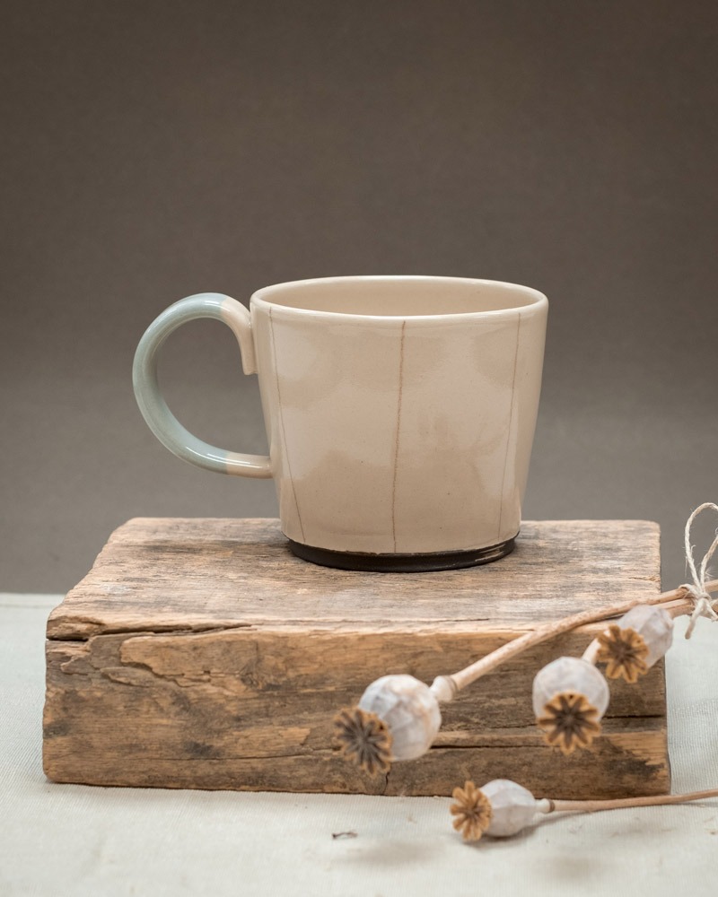 Skodelica Sitnica je nastala na lončarskem vretenu iz bele gline. Dobrovoljna in lahkotna skodelica je skoraj čisto elegantna, na mizi pa pritegne ravno prav pozornosti. Njena prostornina je približno 2,5 dcl.