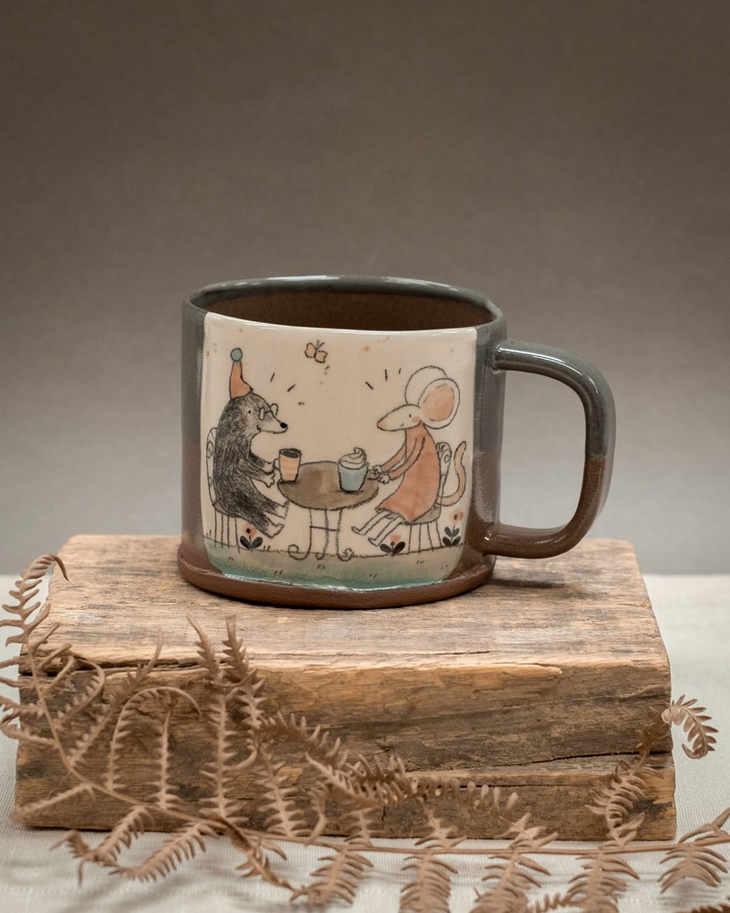 Večja skodelica za čaj in kavo z ilustracijo. Zaradi svoje velikosti (4 dcl) je primerna za čaj, vročo čokolado, belo kavo in vse ostale tekoče dobrote.