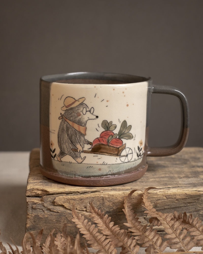 Večja skodelica za čaj in kavo z ilustracijo. Zaradi svoje velikosti (4 dcl) je primerna za čaj, vročo čokolado, belo kavo in vse ostale tekoče dobrote.